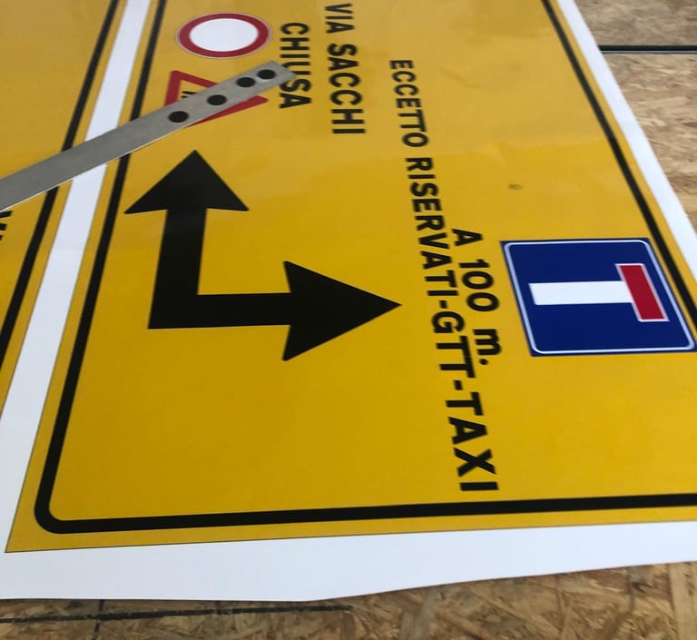 Produciamo cartelli stradali certificati in conformità al Codice della Strada, utilizzando materiali di alta qualità e pellicole retroriflettenti di ultima generazione (classe 1, classe 2, classe 3). Ogni prodotto è progettato per garantire massima visibilità, durata nel tempo e resistenza agli agenti atmosferici.